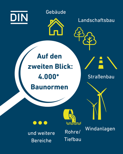 Markus Brunner, stellvertretender Geschäftsführer des Normenausschusses Bauwesen bei DIN, erklärt dazu: „Was genau eine ‚Baunorm‘ ist, ist nicht fest definiert. Deshalb sind in den 4.000 von DIN als Baunormen bezeichneten Normen viele angrenzende Bereiche, aber auch solche zu finden, die eher im weitesten Sinne mit Bauen zu tun haben.“