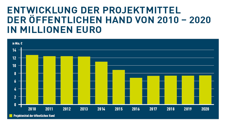 Die Zuschüsse der öffentlichen Hand für alle Normungsbereiche, nicht nur im Baubereich, haben sich im Zeitverlauf erheblich vermindert, wie die nachfolgende Grafik für die vergangenen 10 Jahre zeigt.