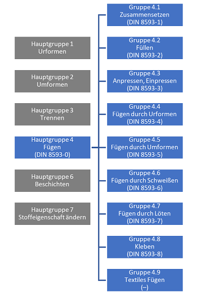 Bild 2 – Ordnungssystem der Fertigungsverfahren: Übersicht über die Hauptgruppe 4 “Fügen” (Quelle: DIN 8580:2022-12, Bild 5)