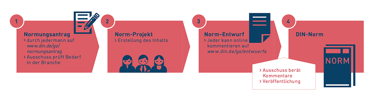 - DIN bietet einen bewährten und effizienten Prozess zur Erarbeitung von Normen an.